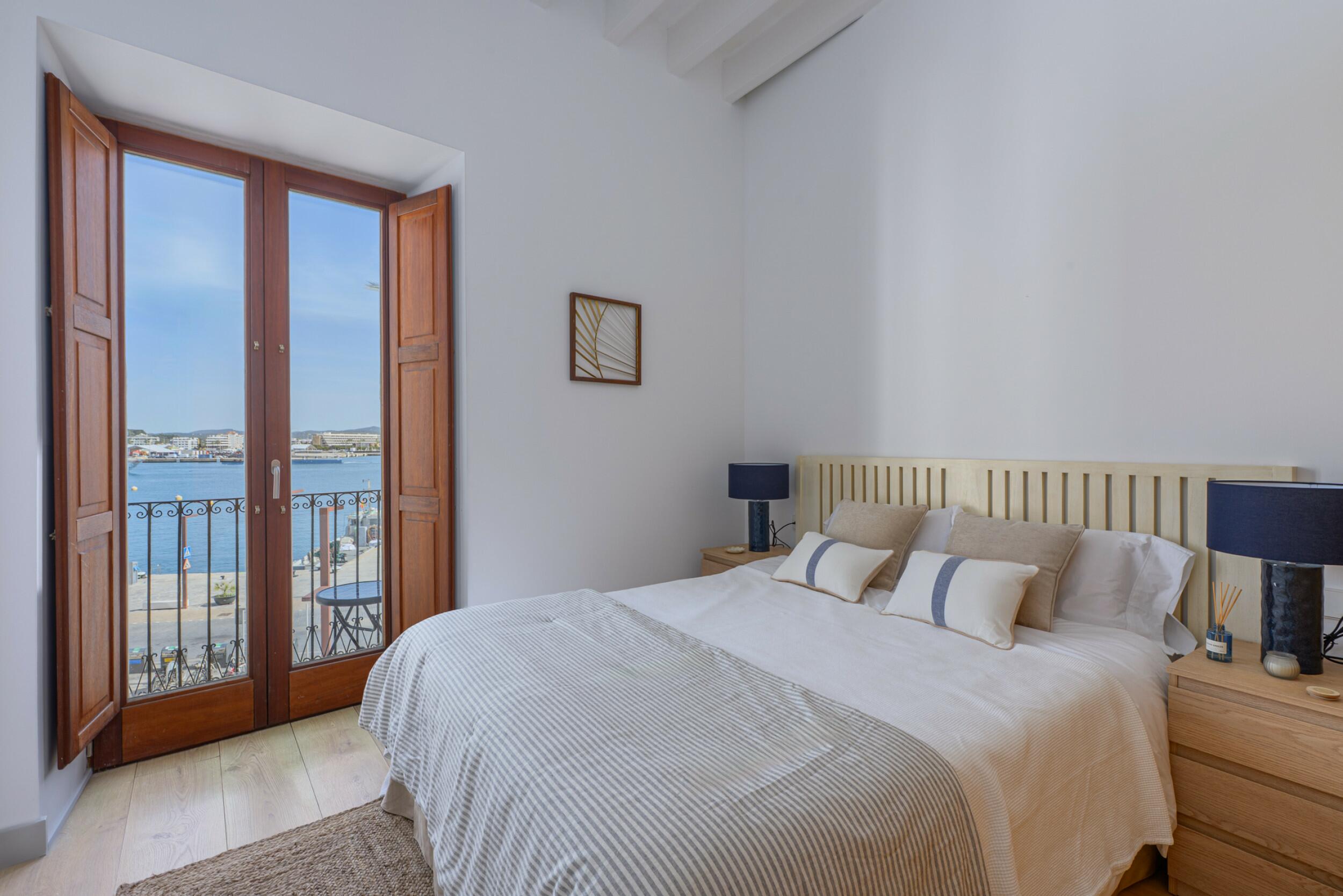 Een balkon strekt zich uit vanaf een van de slaapkamers en biedt een aangename en subtiele verbinding met de omliggende havenomgeving.