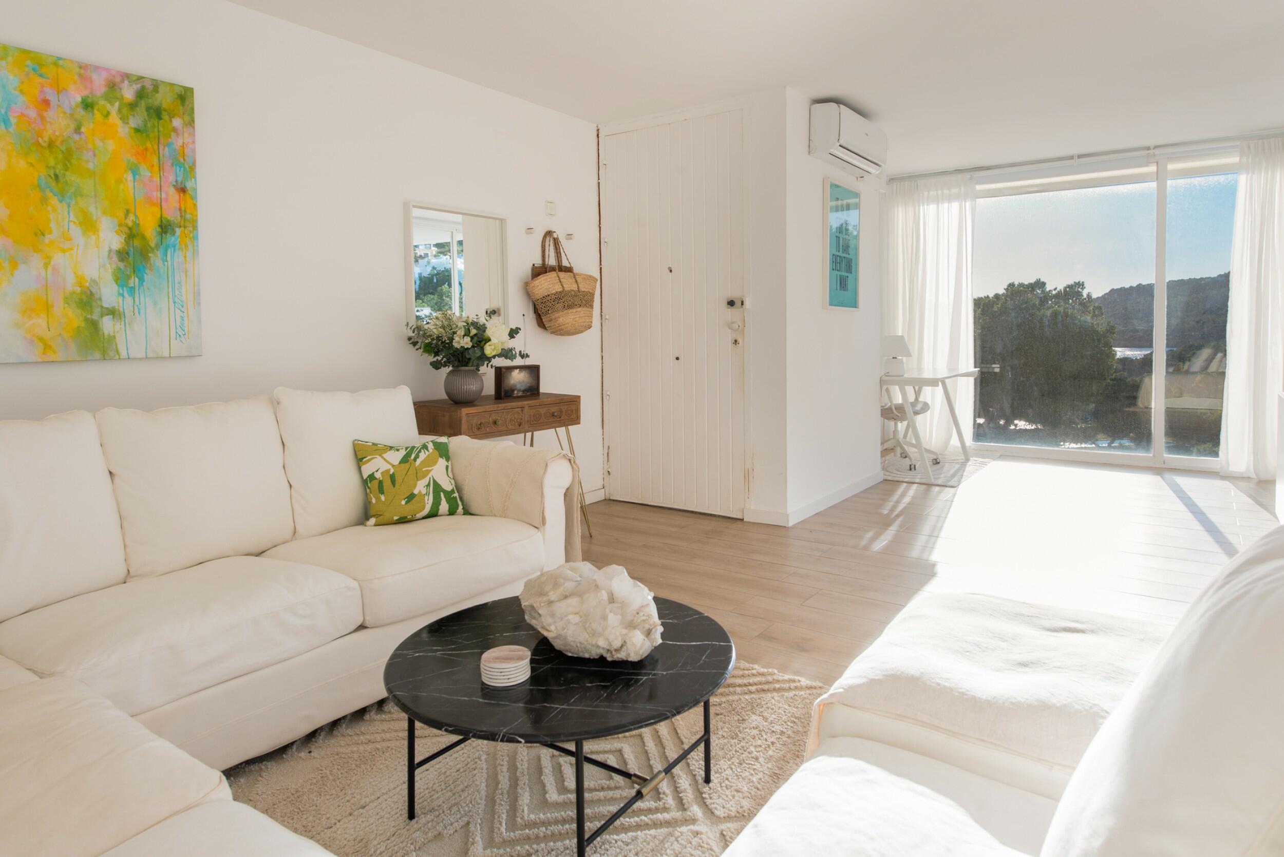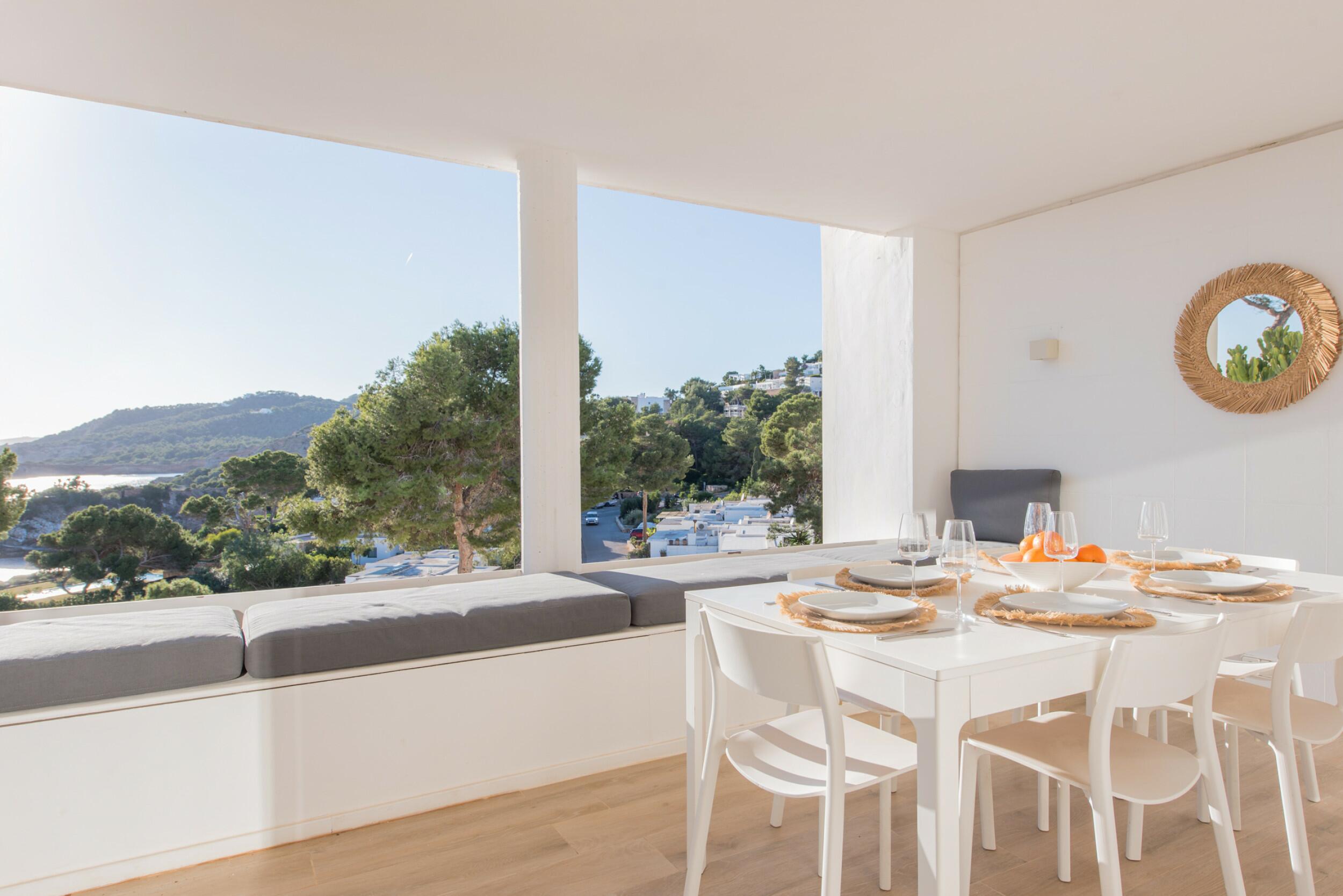 Verfijnd designerappartement met terras en zwembad in Santa Eulalia