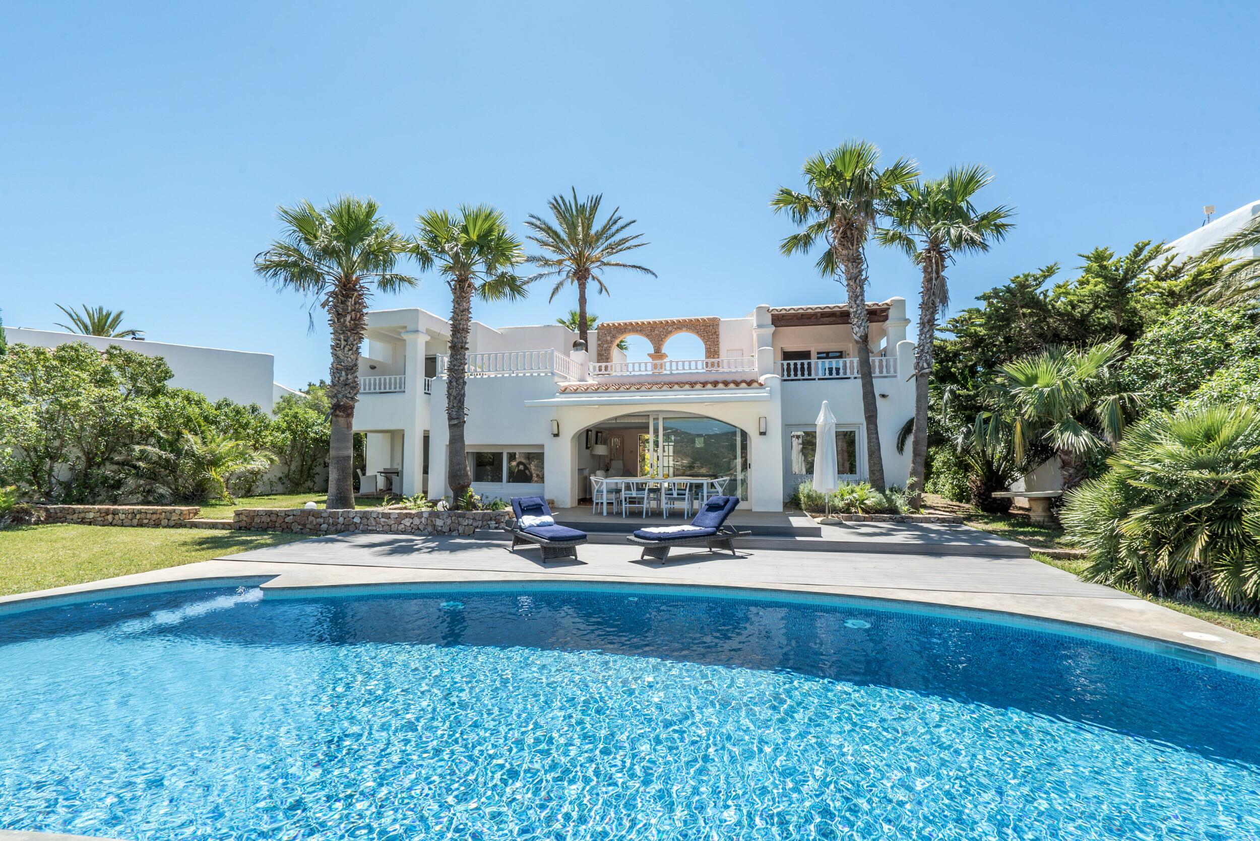 Luxe villa in tropische stijl met jacuzzi en zeezicht in Es Cubells