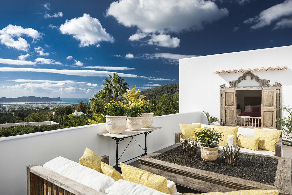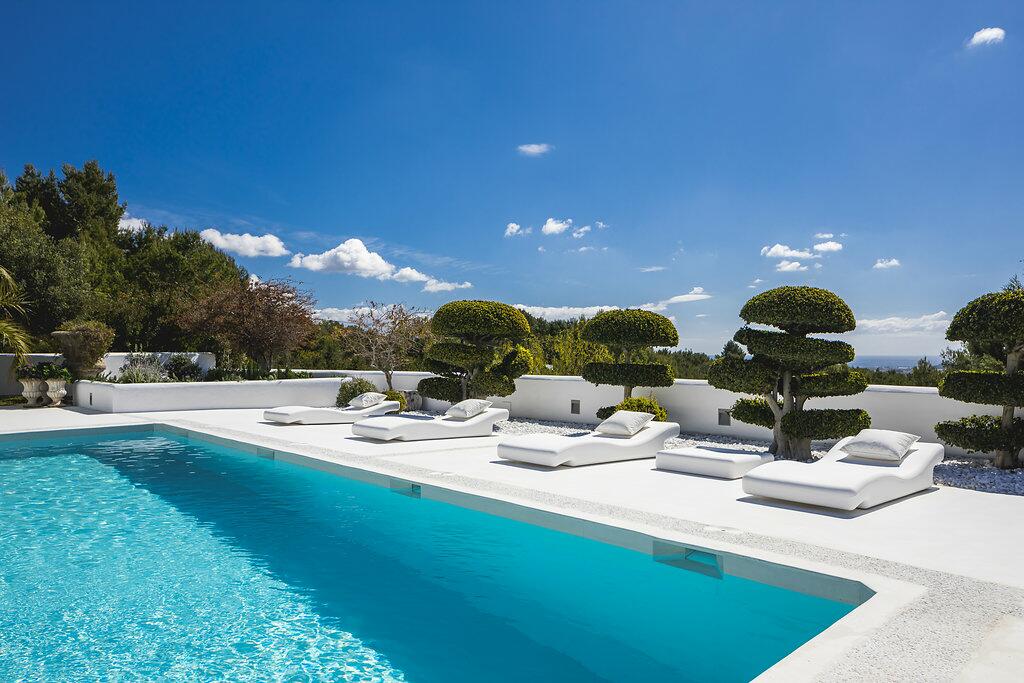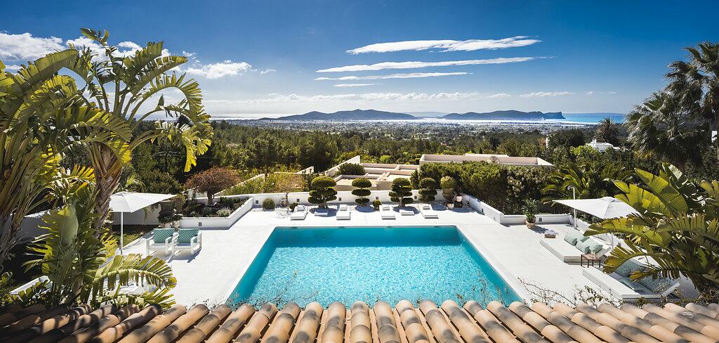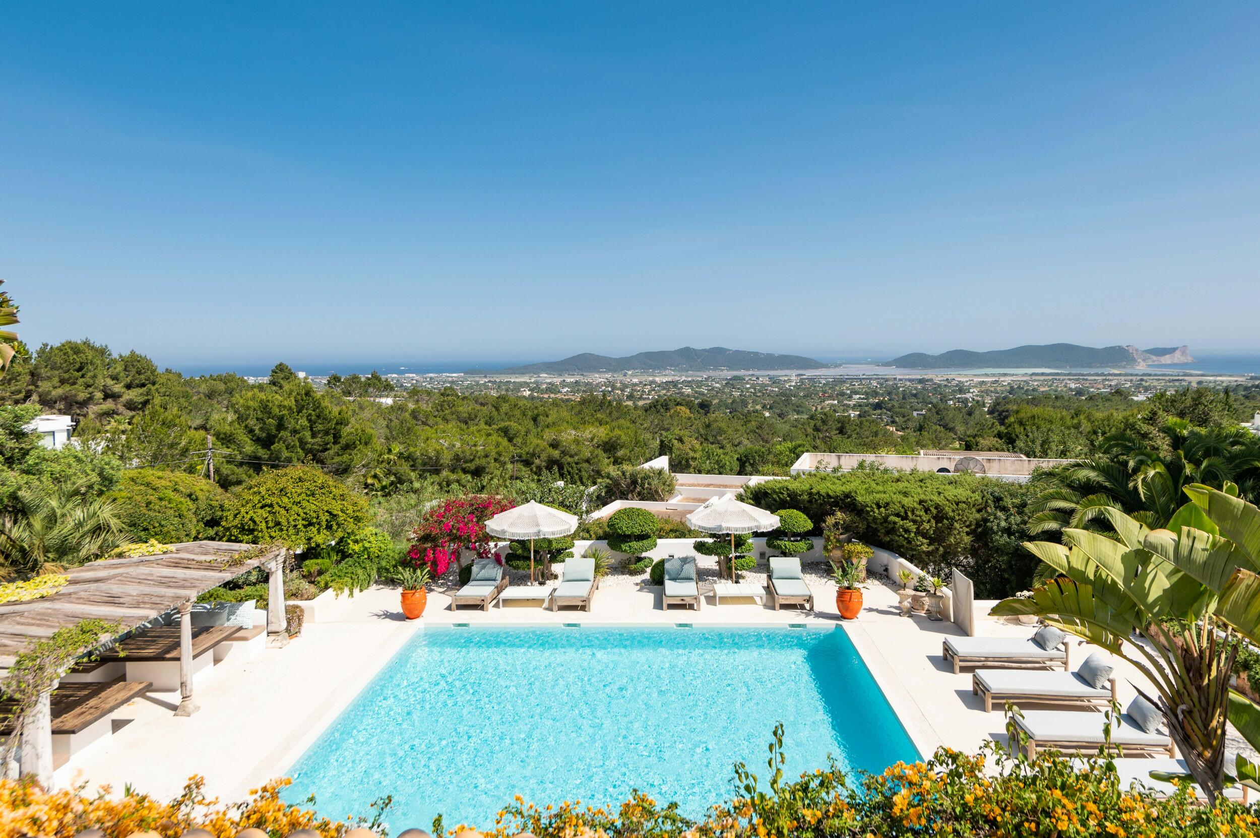 Elegante villa op een heuveltop in Ibiza met panoramisch zeezicht en gastenverbl