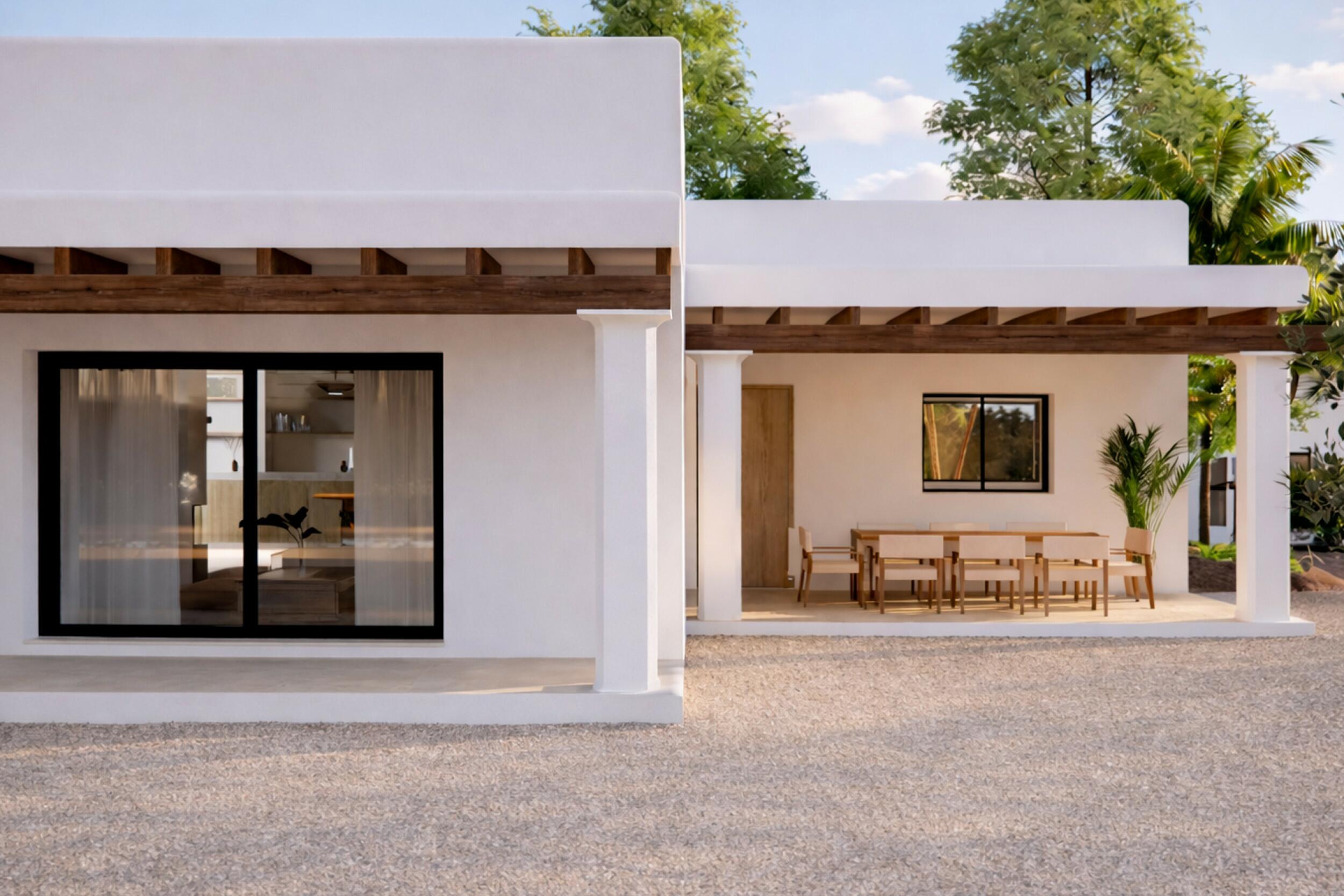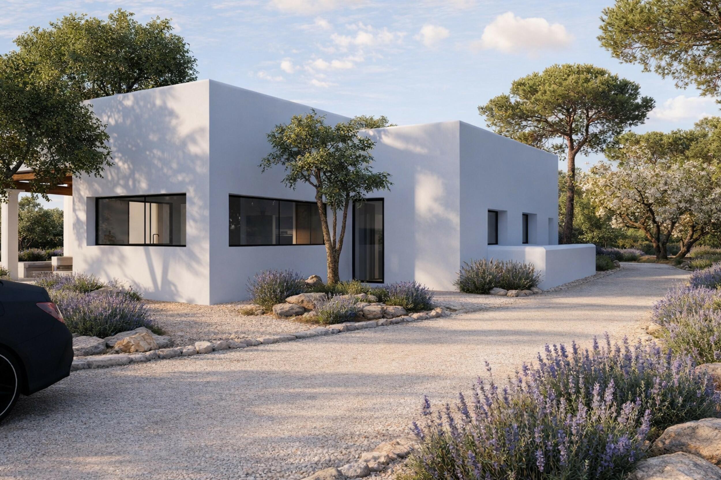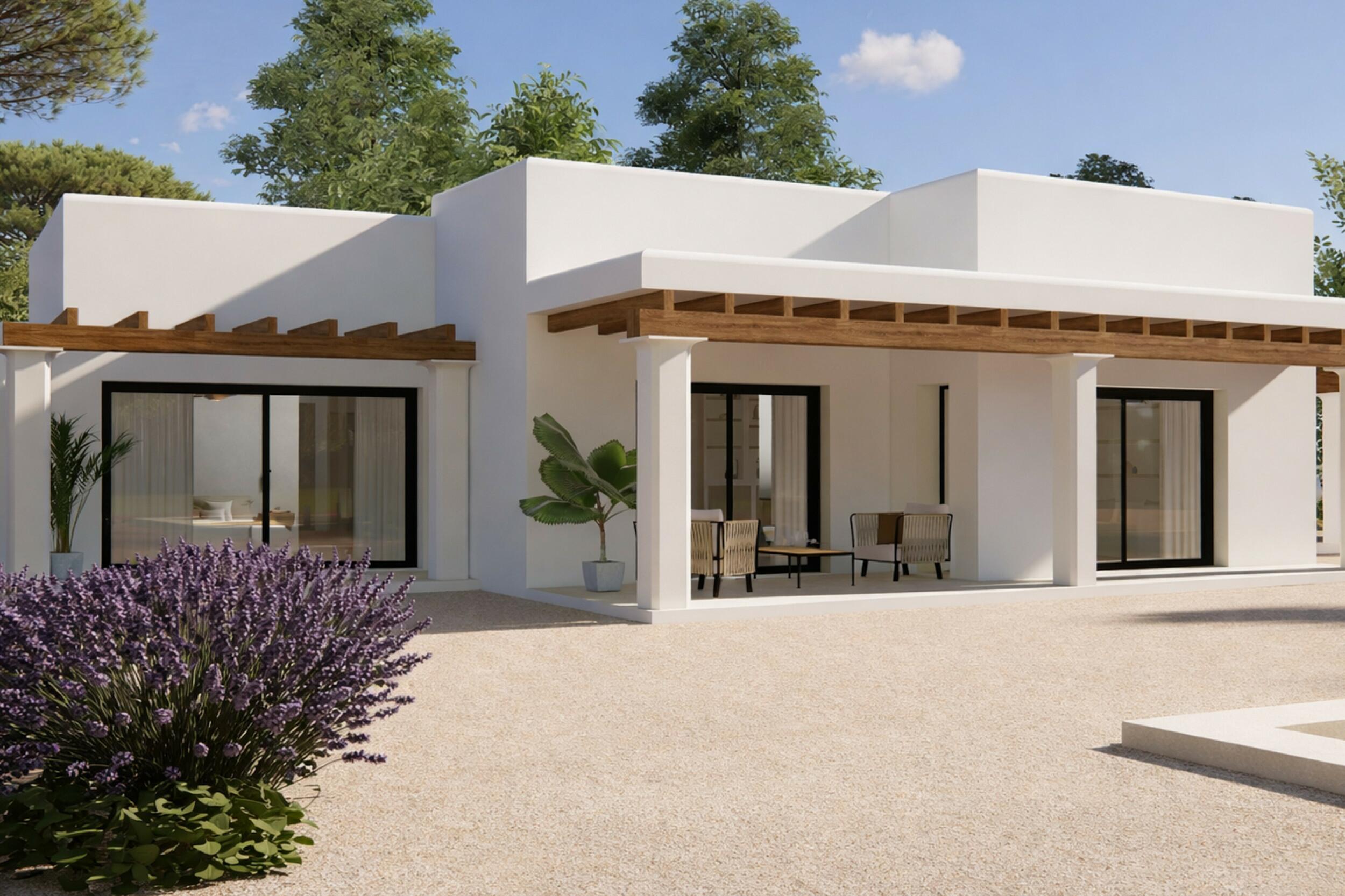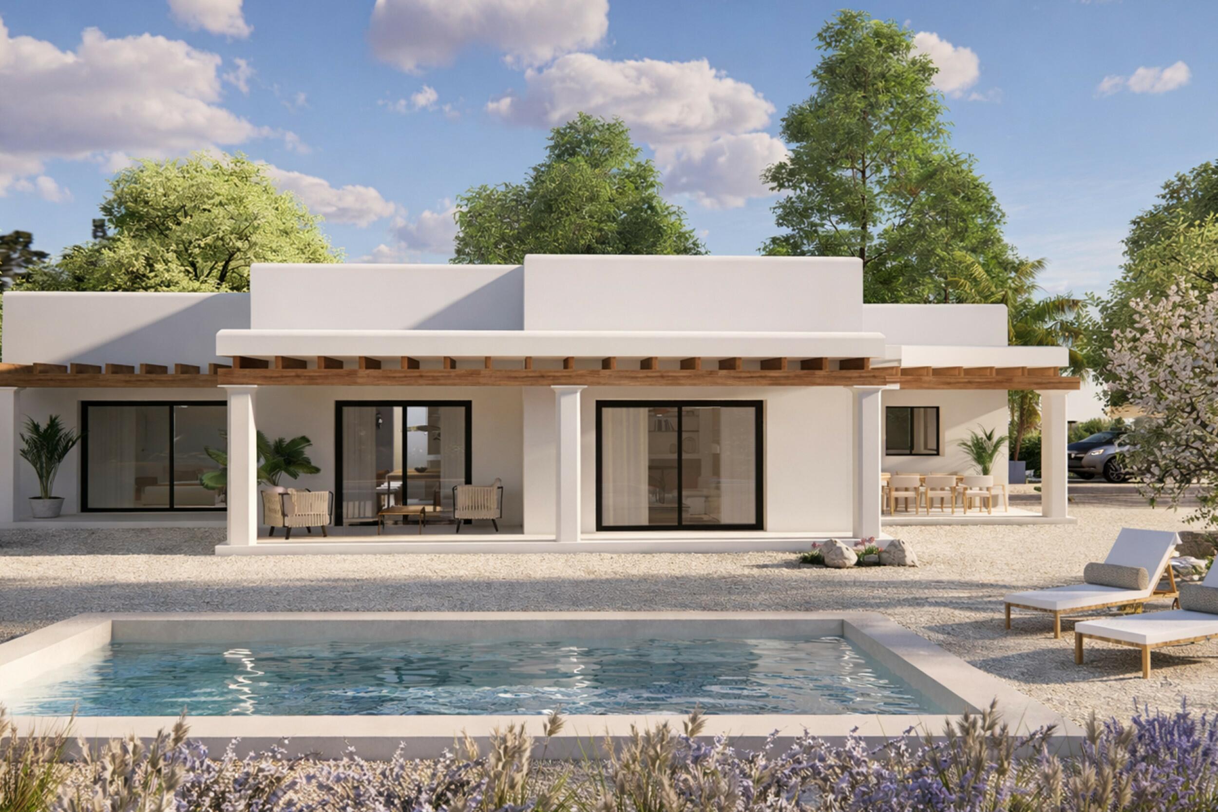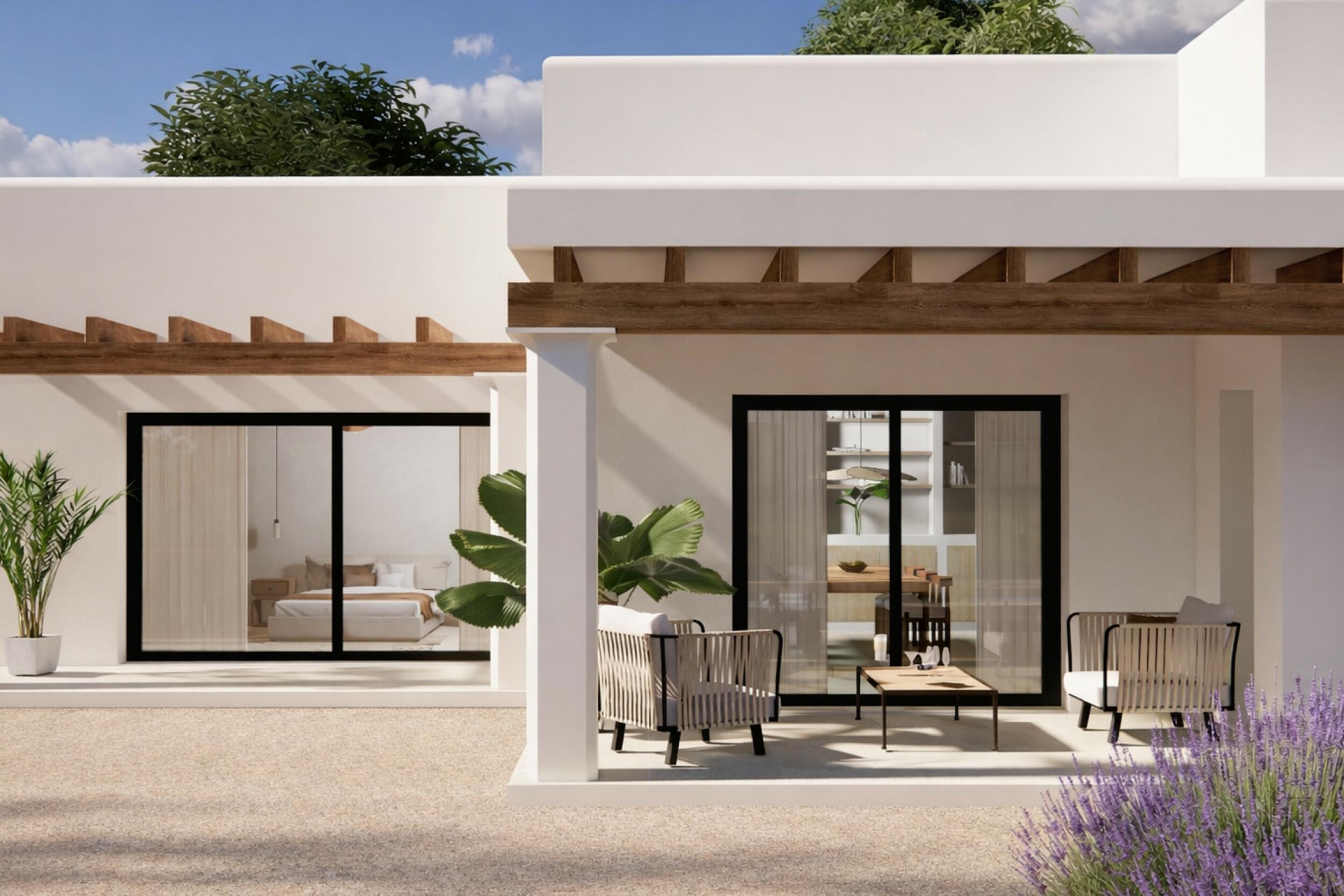 Nieuwbouw van eigentijdse Ibiziaanse stijl in de rustige wijk Benimussa