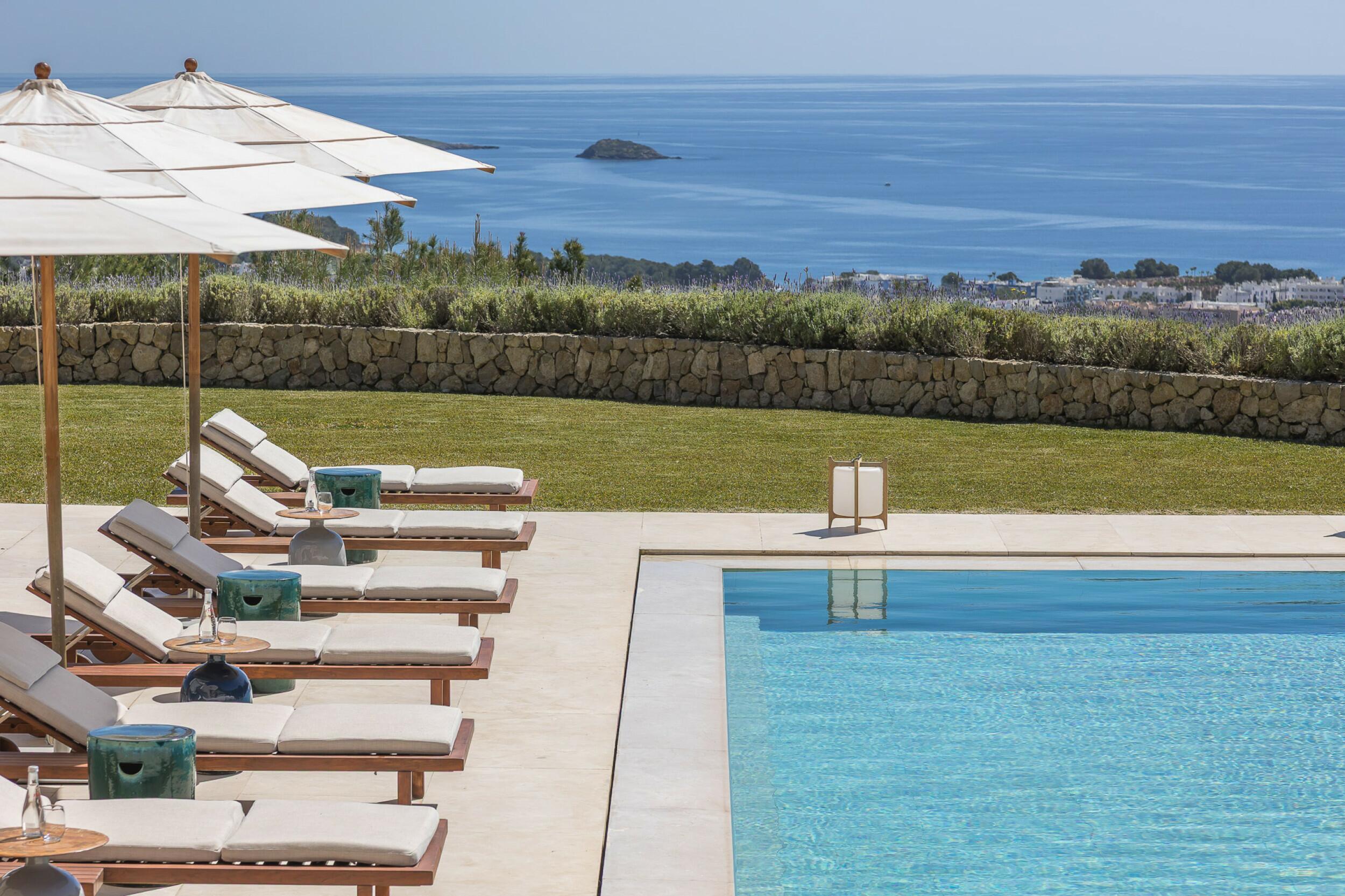 Opvallende eigentijdse villa op het platteland met zeezicht in Santa Eulalia